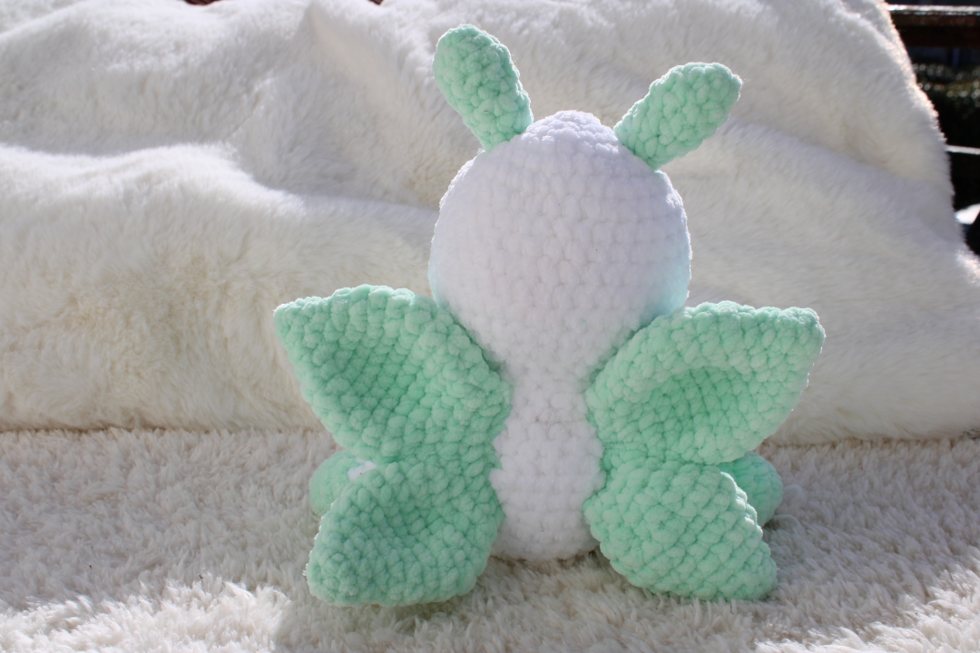 Adorable peluche papillon fait main en fil velours. Doux et réconfortant, idéal pour accompagner les enfants dans leurs moments de jeu et de tendresse.