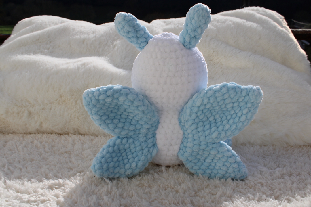 Adorable peluche papillon fait main en fil velours. Doux et réconfortant, idéal pour accompagner les enfants dans leurs moments de jeu et de tendresse.